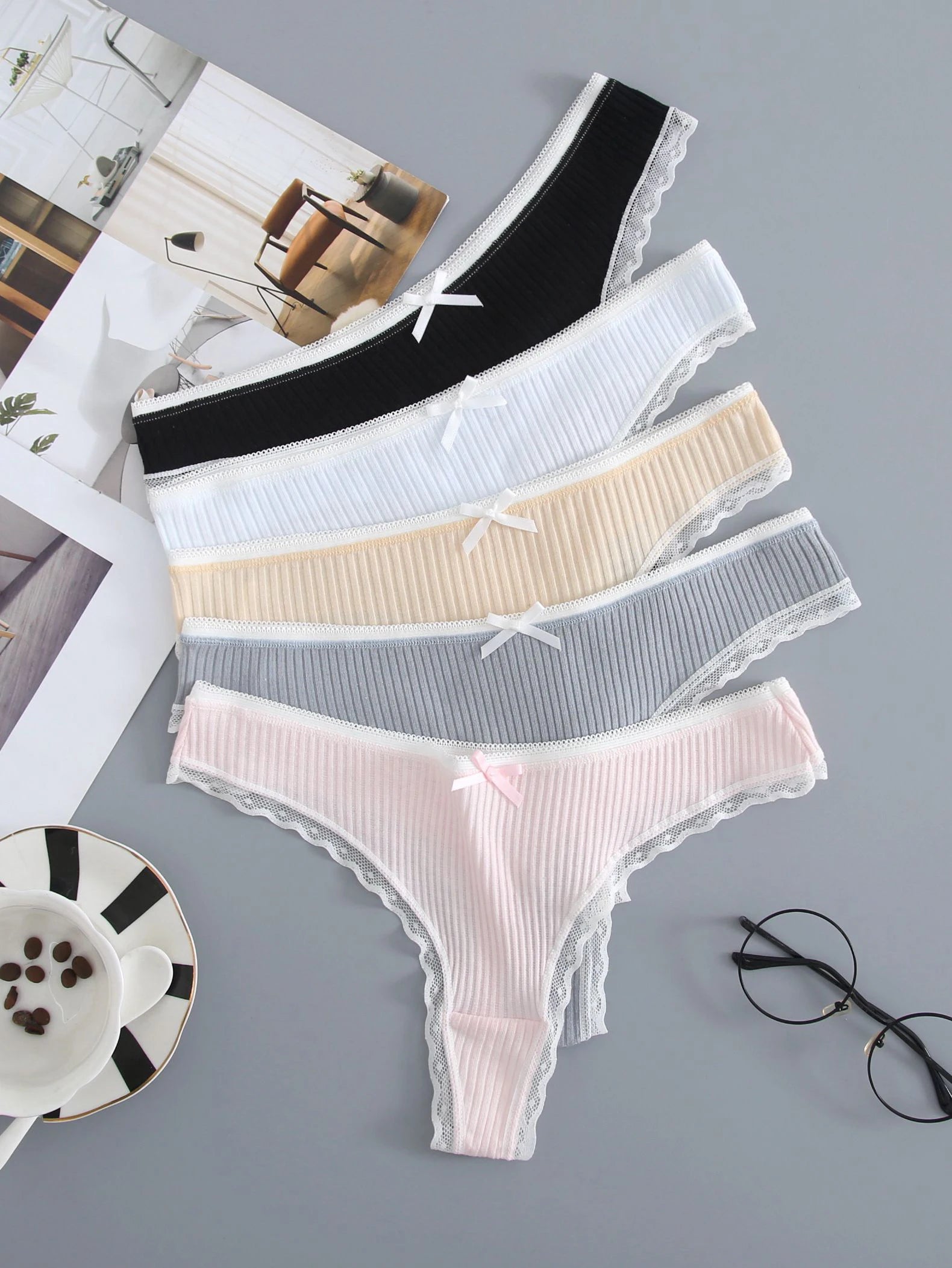 5PCS women cotton panties Fashion Sexy Breathable Underpants Solid Color Low Waist G-string Lingerie