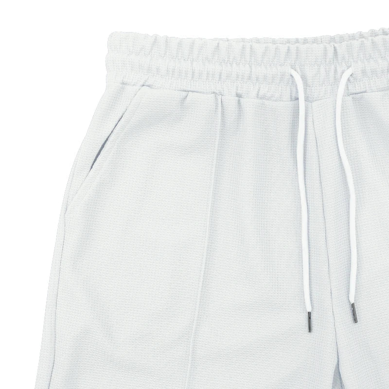 Cross border 2024 summer men's polo shirt set solid color waffle short sleeve slim lapel t-shirt casual men's set