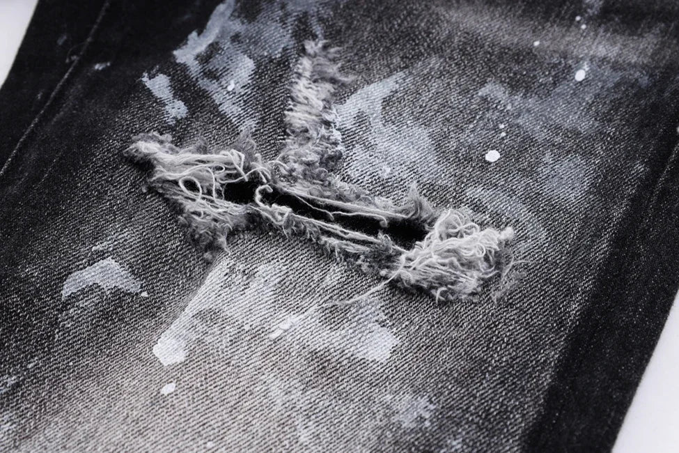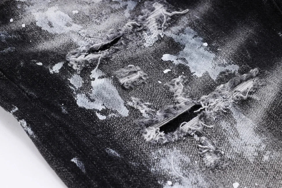 "D2 Fashion Men’s Slim Fit Distressed Black Denim Jeans – Hole Design, Pencil Trousers (Model 8422)"