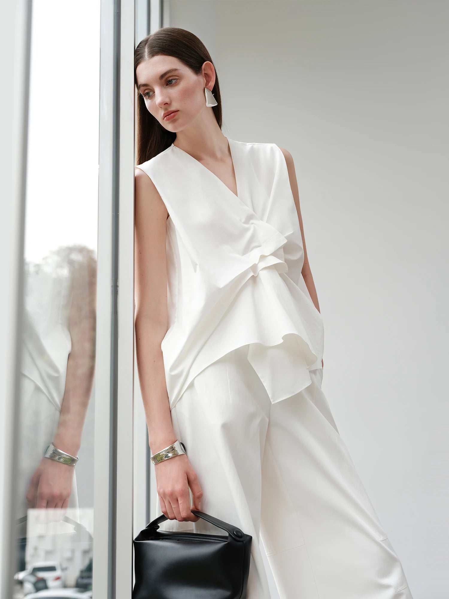FSLE【Premium Series】2025 Summer Women's Textured Sleeveless Blouse - Crinkle Weave & Relaxed Fit with Artisan Detailing