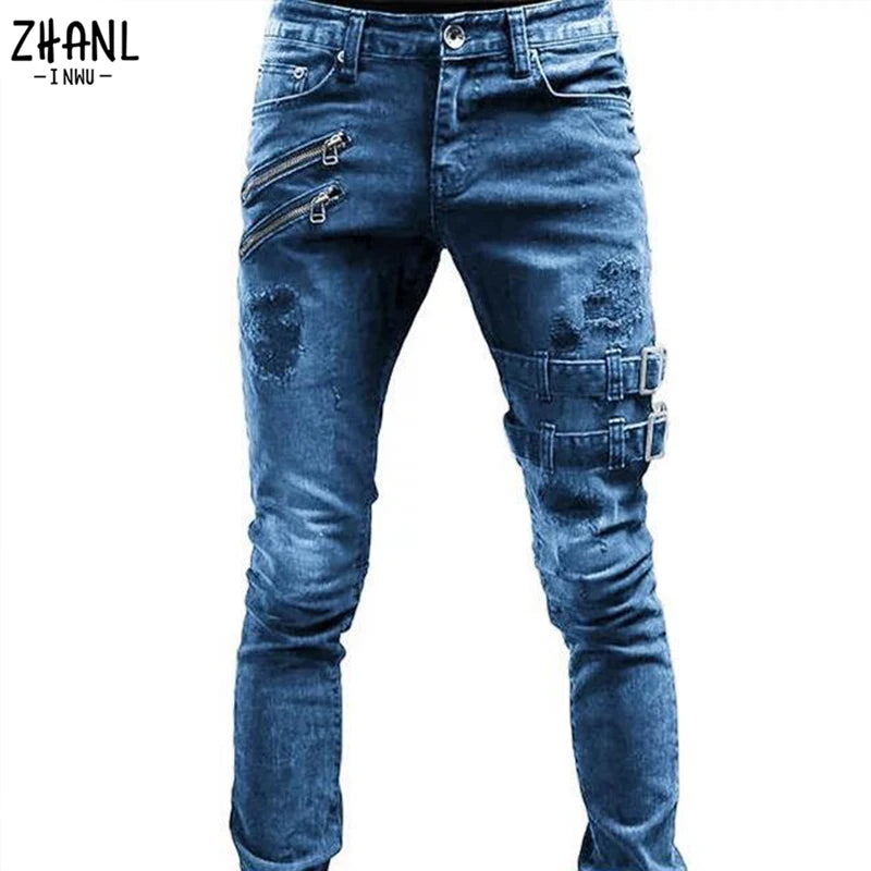 Plus Size Straight Jeans Man Pants Spring Summer Boyfriend Jeans Streetwear Skinny Zips 3 Colors Cacual Long Denim Trousers