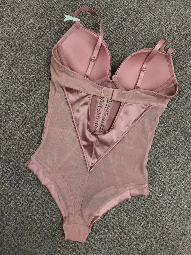Plus Size Sexy Lace Bodysuit Lingerie – Sheer Push-Up One-Piece Shapewear for Women
