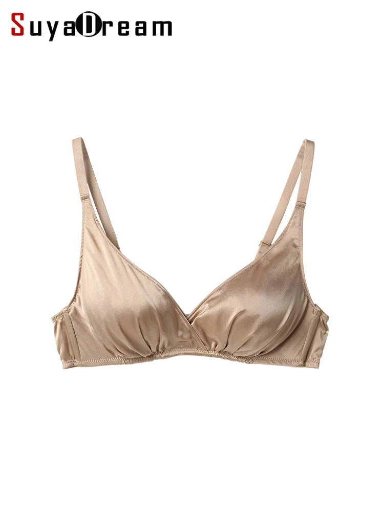 SuyaDream Women's Silk Bra – Wire-Free, Thin Padding, 100% Natural Silk Lining
