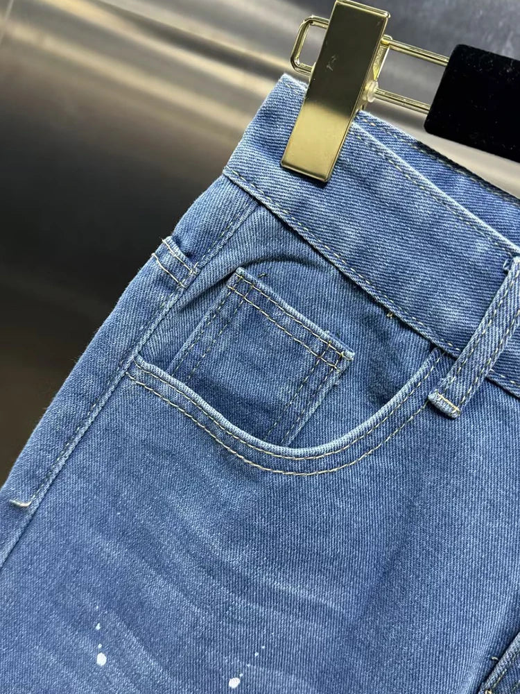 VGH Casual Hollow Out Spliced Lace Solid Jeans For Women High Waist Patchwork Pockets Minimalist Loose Wide Leg Pants Female New